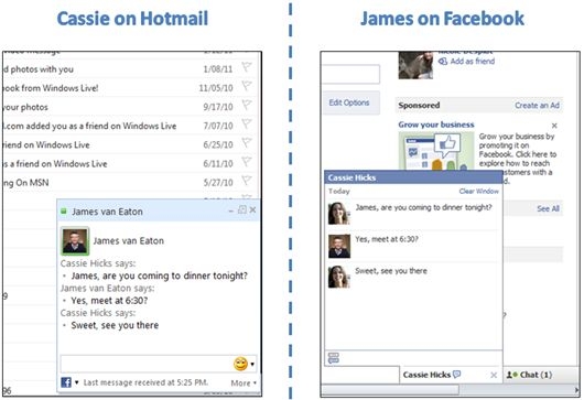 在我们刚开始提供通过Hotmail内置功能来和Facebook好友聊天的时候,只能够支持6个地区的用户。从那之后我们就开始和Facebook密切合作以改善其功效。数周前,我们终于能够宣布这一功能已经适用于全球所有的MSN。今天这一功能又进一步扩展到了Hotmail。虽然Gmail通过在自己的邮箱里内置聊天工具而领先一步,我们则更上一层楼,直接将我们自己的聊天工具和Facebook Chat聊天工具同时内置进了你的Hotmail邮箱。从今天开始我们将在Hotmail中标明这一更新。
